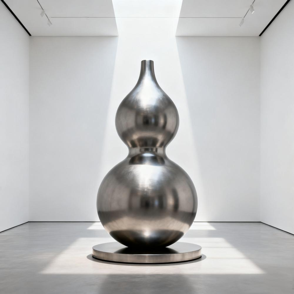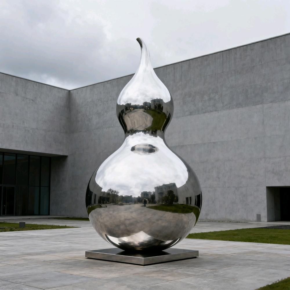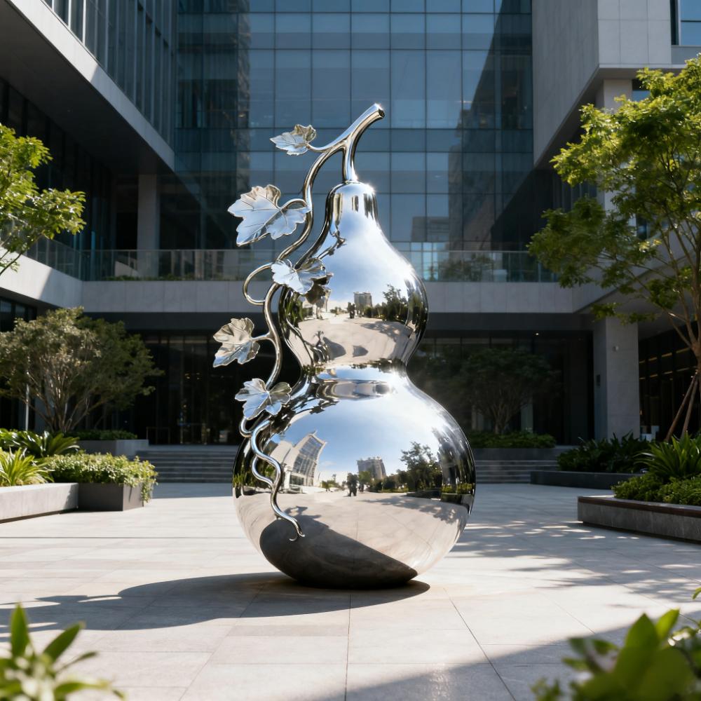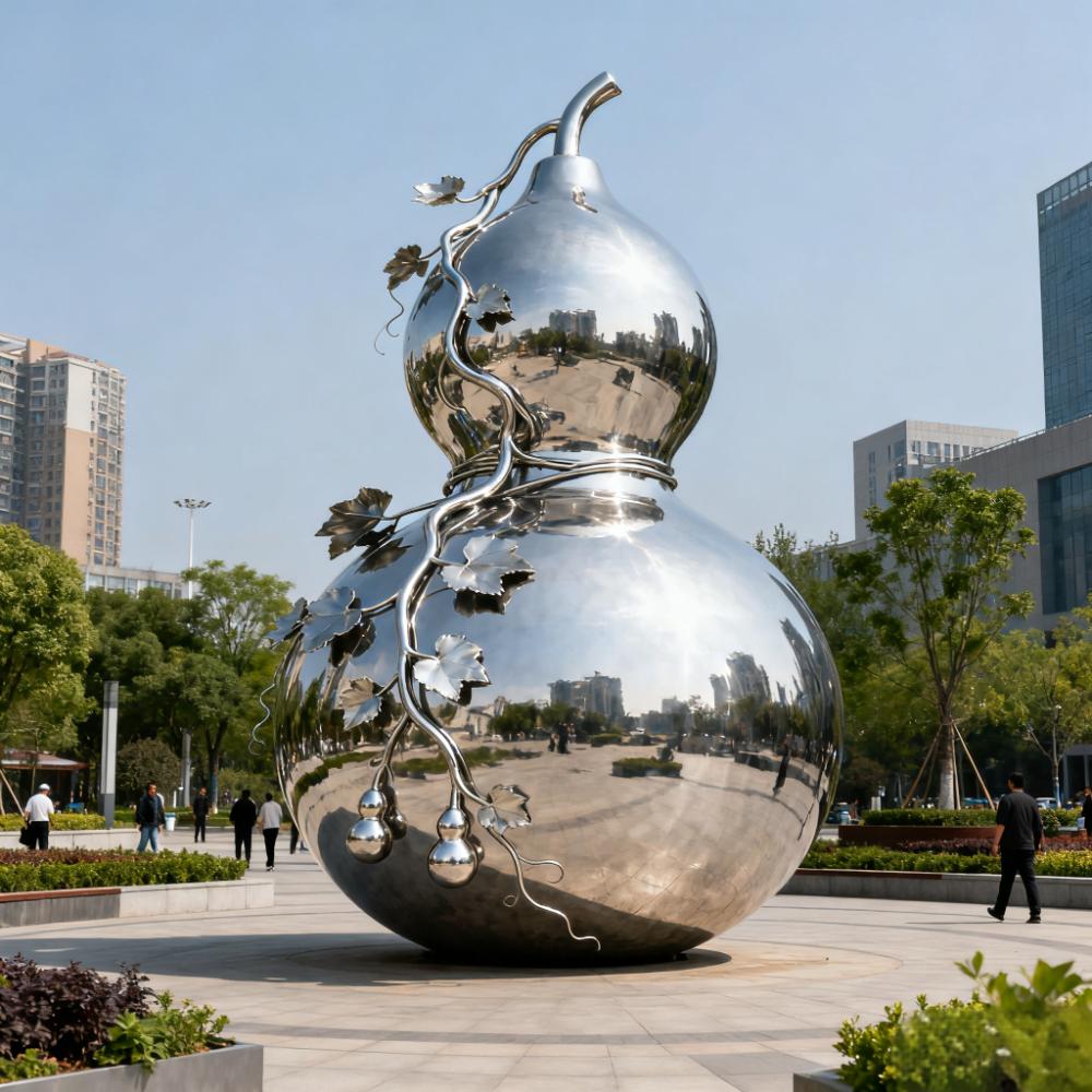 室内雕塑景观摆件 景观美陈小品 304不锈钢拉丝 大型葫芦雕塑定制 雕塑厂家电话