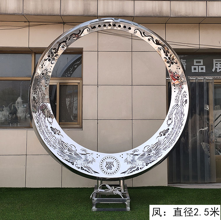不锈钢龙凤圆环 304镜面 景观小品雕塑 美陈摆件 厂家定制
