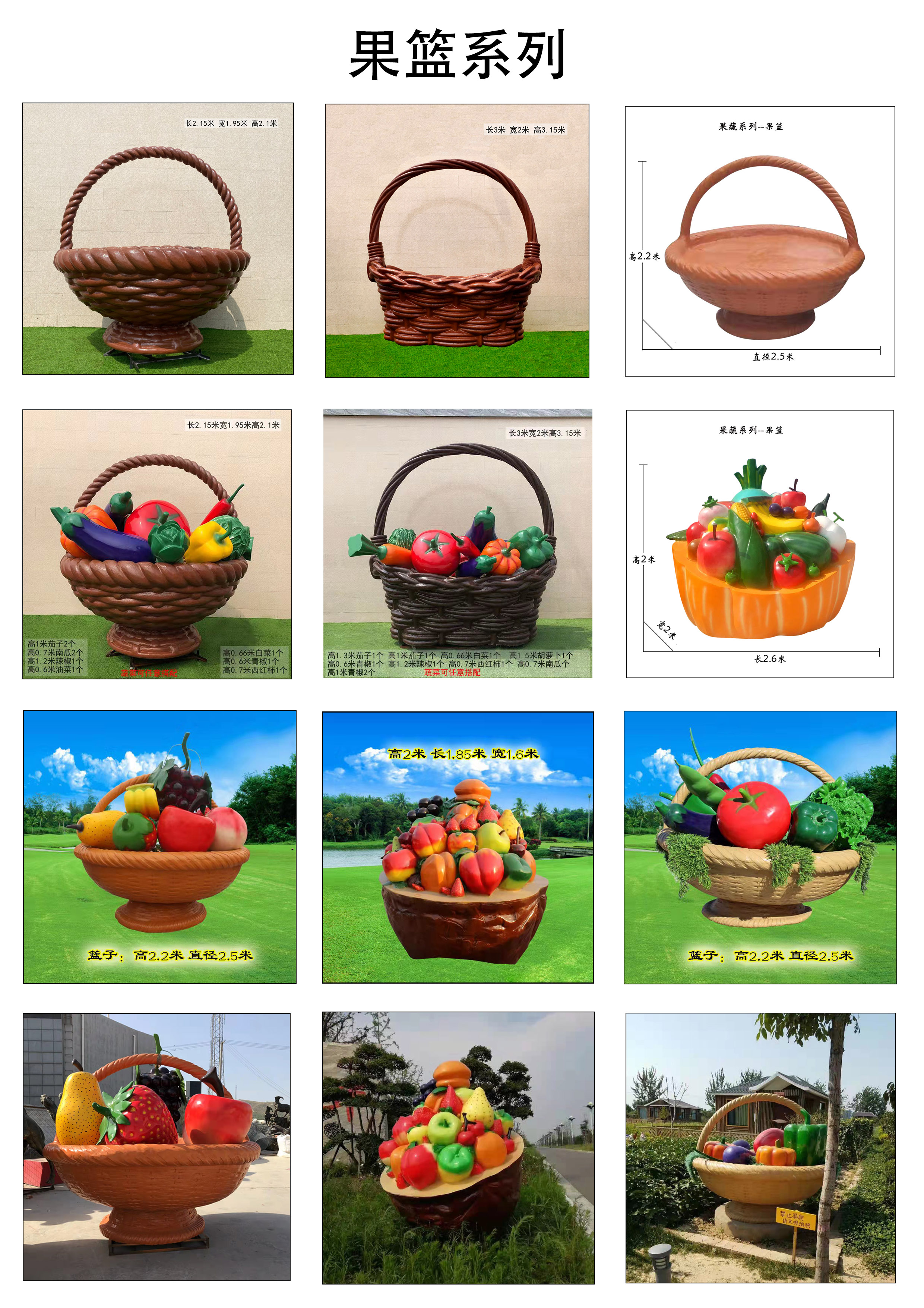 玻璃钢水果雕塑 果篮 户外景观小品摆件 大型美陈 广场雕塑